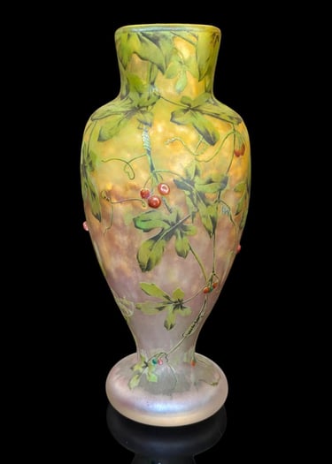 The selection presented brings together glass vases made in France in the early 20th century, drawn from the major Art Nouveau and Art Deco movements. Each piece is selected for the quality of its craftsmanship, the richness of its décor, and the authenticity of its materials, notably multilayer glass. These Art Nouveau and Art Deco vases are signed or attributed to leading houses and makers, representative of French glassmaking expertise.